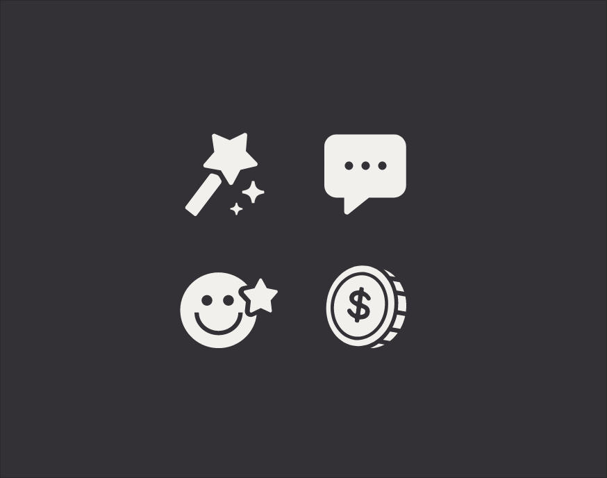 This script logotype has a whimsical hand-written feeling, furthering the concept of magic and human interaction throughout the app. The logo can also be paired with the wand icon, which visually supports the name “Presto.”