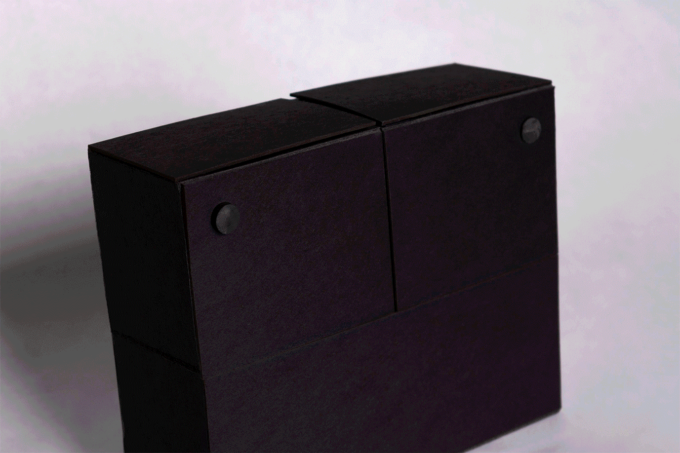 The packaging designed for this project, is created as a specialty item, so it is created as a packaging experience to make the brand more interactive and memorable. When viewing the black exterior packaging, there is a sense of mystery because there is no indication of what the interior will be. The box opens from the sides, where the experience aspect is revealed as the drinks rise while opening the box. The drinks rise and their vibrant colors are revealed, resulting in a fun surprise for the audience.