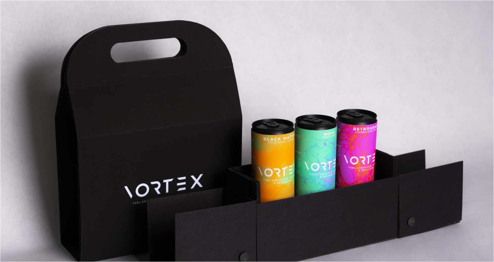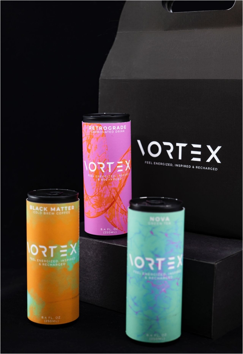 Vortex is an energy drink company focusing on organic caffeinated beverages, such as teas, coffees, and carbonated drinks. As a brand with a passion for astronomy and space research, they needed a brand that emphasized that aspect.